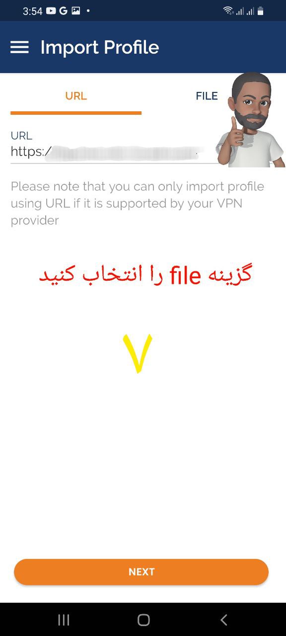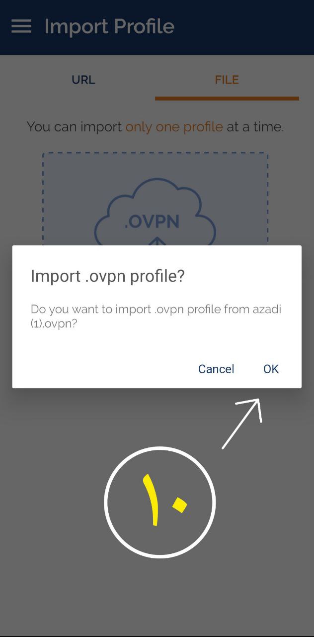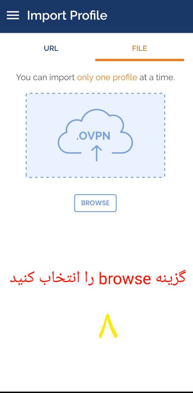 فایل azadi.ovpn که قبلا دانلود کرده اید را انتخاب نمایید: