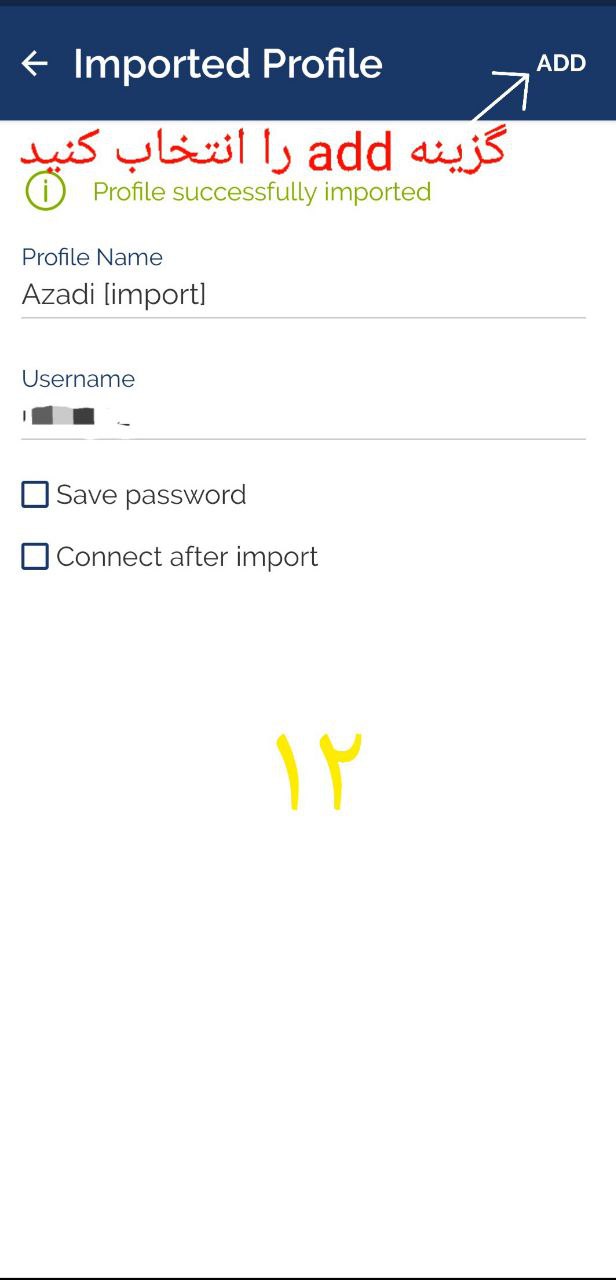 فایل دانلود شده (azadi.ovpn) را مانند تصویر توسط برنامه OpenVPN باز کنید: